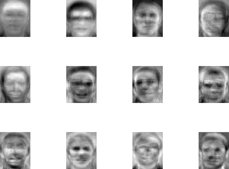 the first 12 basis vectors (each of these basis images is often